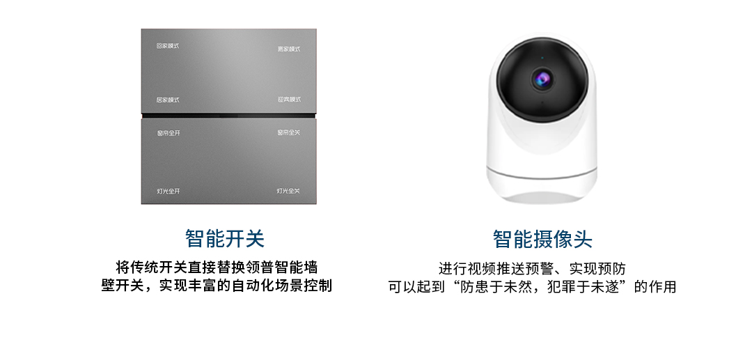 簡潔直觀的扁平化設計,簡單友好的用戶體驗,群組式用戶權限管理,軍工級加密通訊,語音引導調試,一套由您定義的全屋智能。